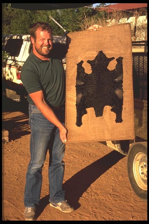 Zum Trocknen aufgespanntes Karakul-Fellchen, 1990