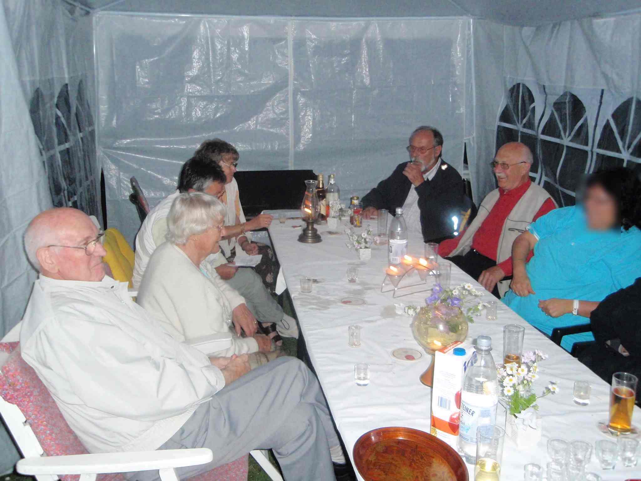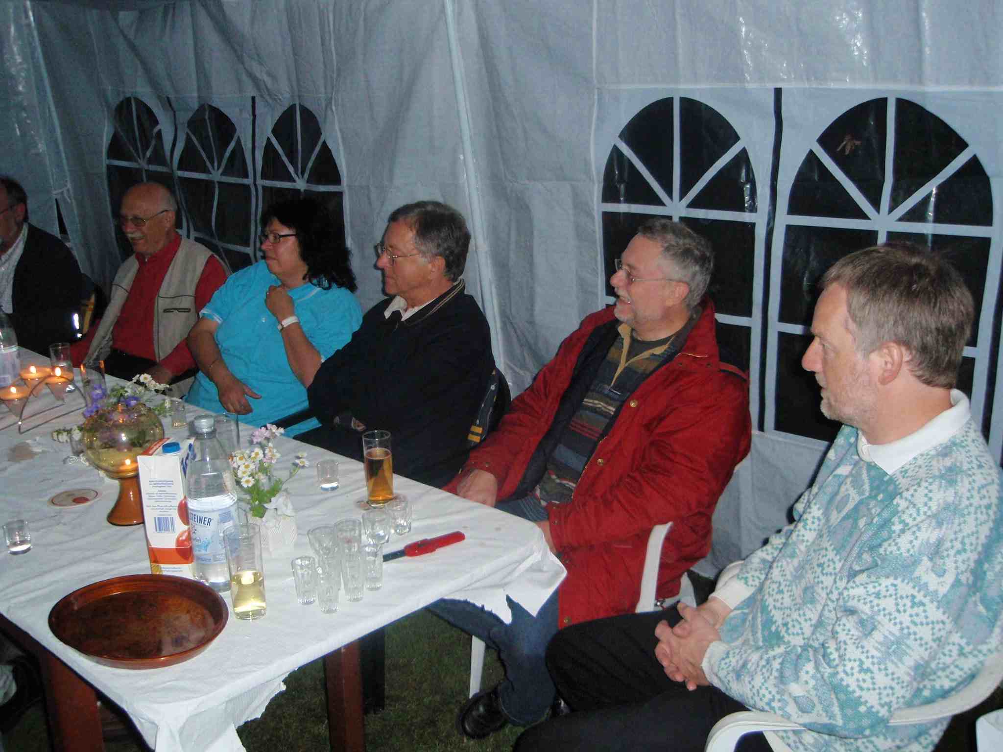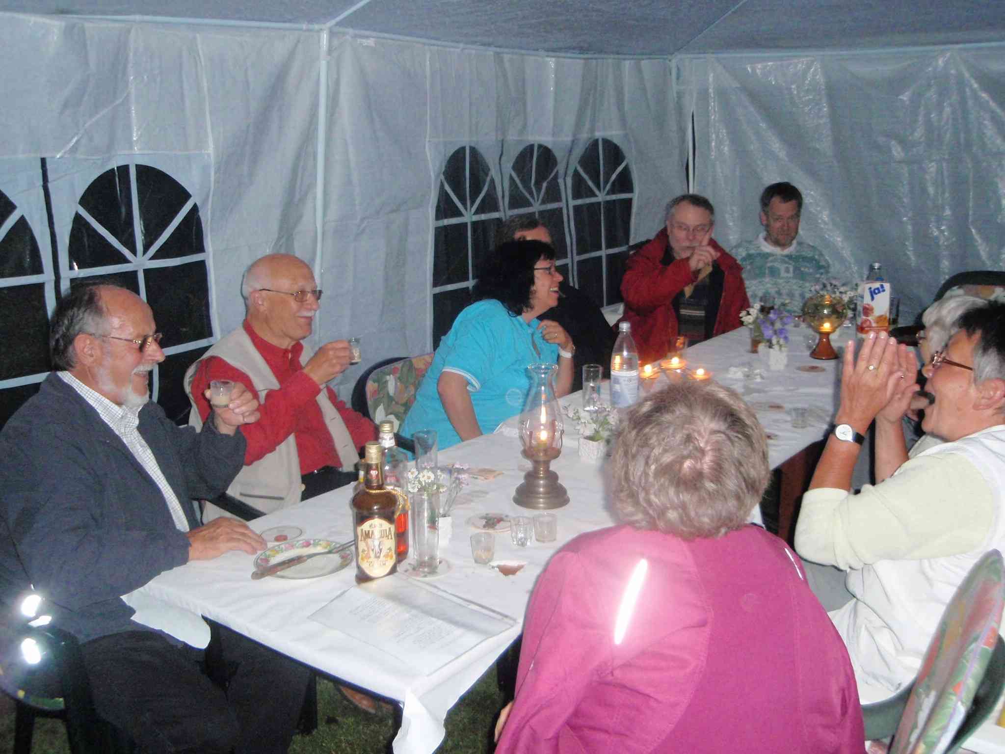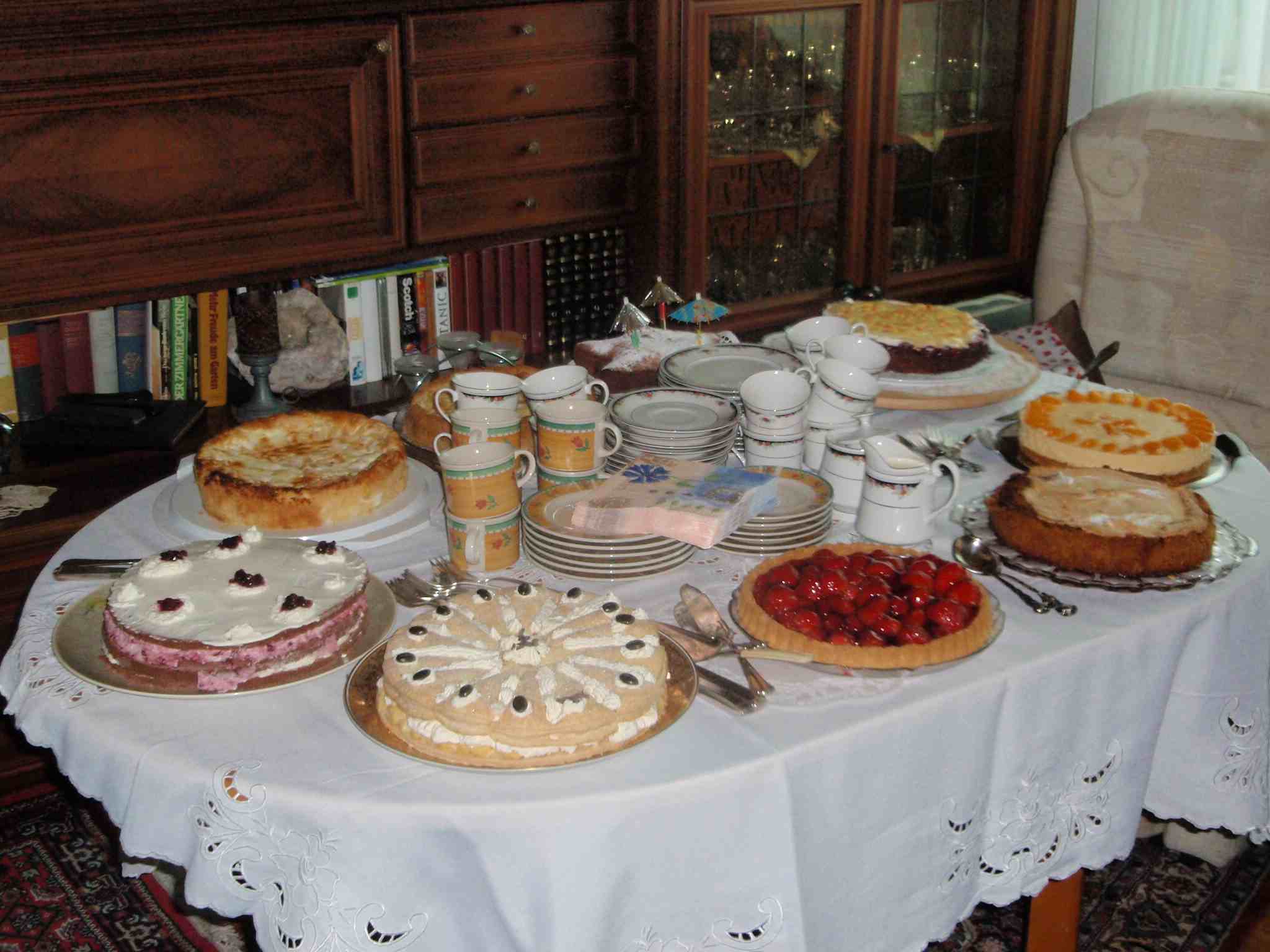 | Denn drinnen steht inzwischen der Kuchen auf dem Tisch - der Kaffee dampft - die ersten Gäste erscheinen. |