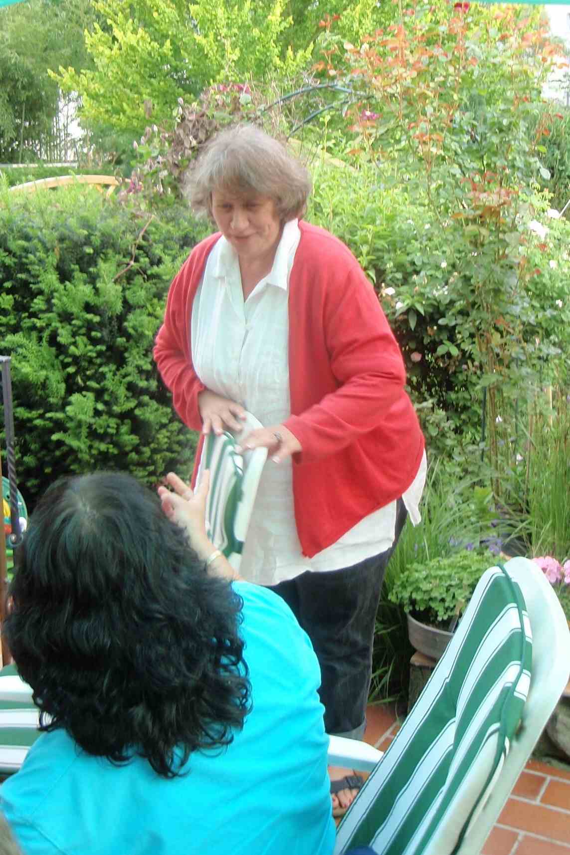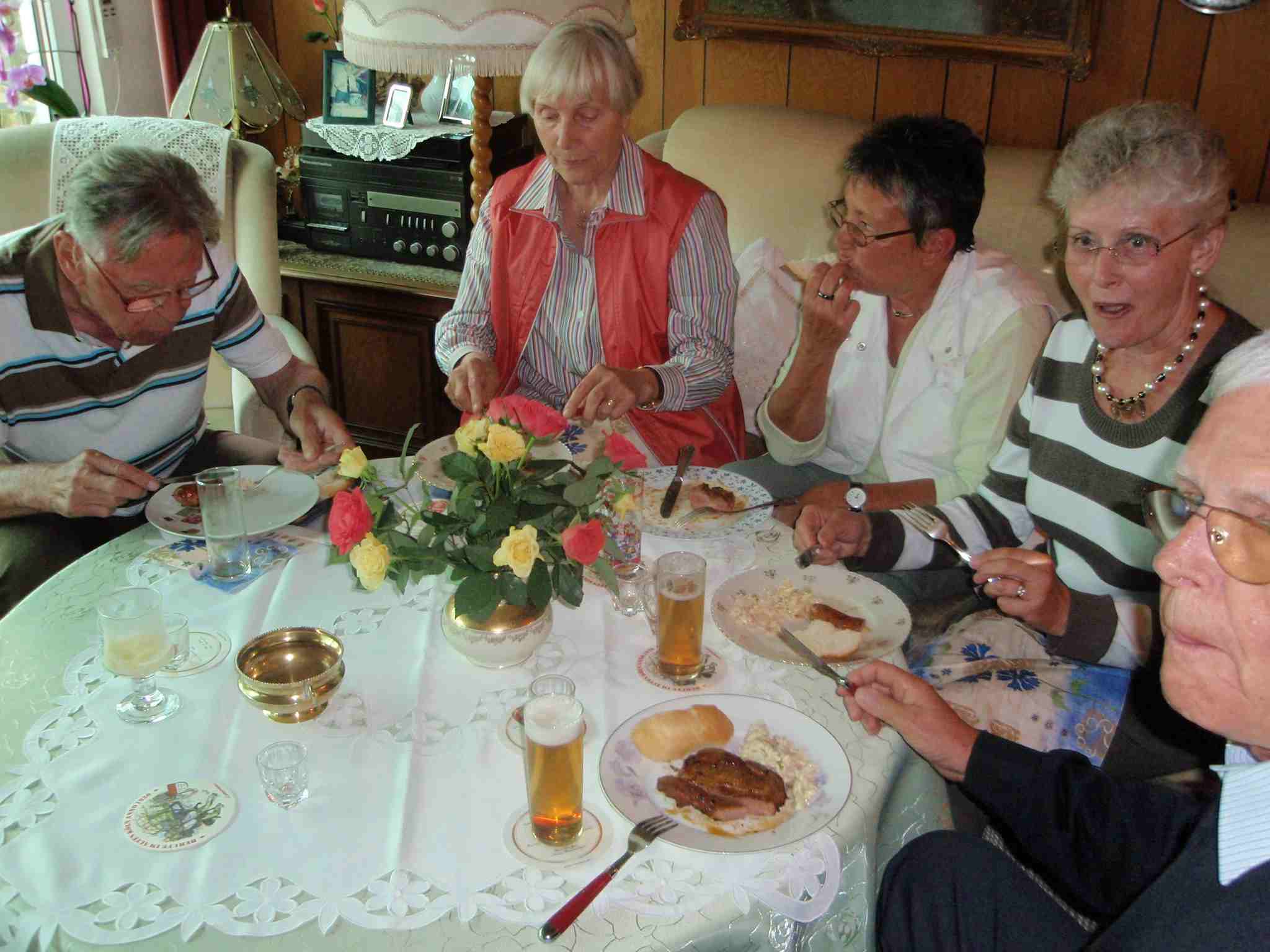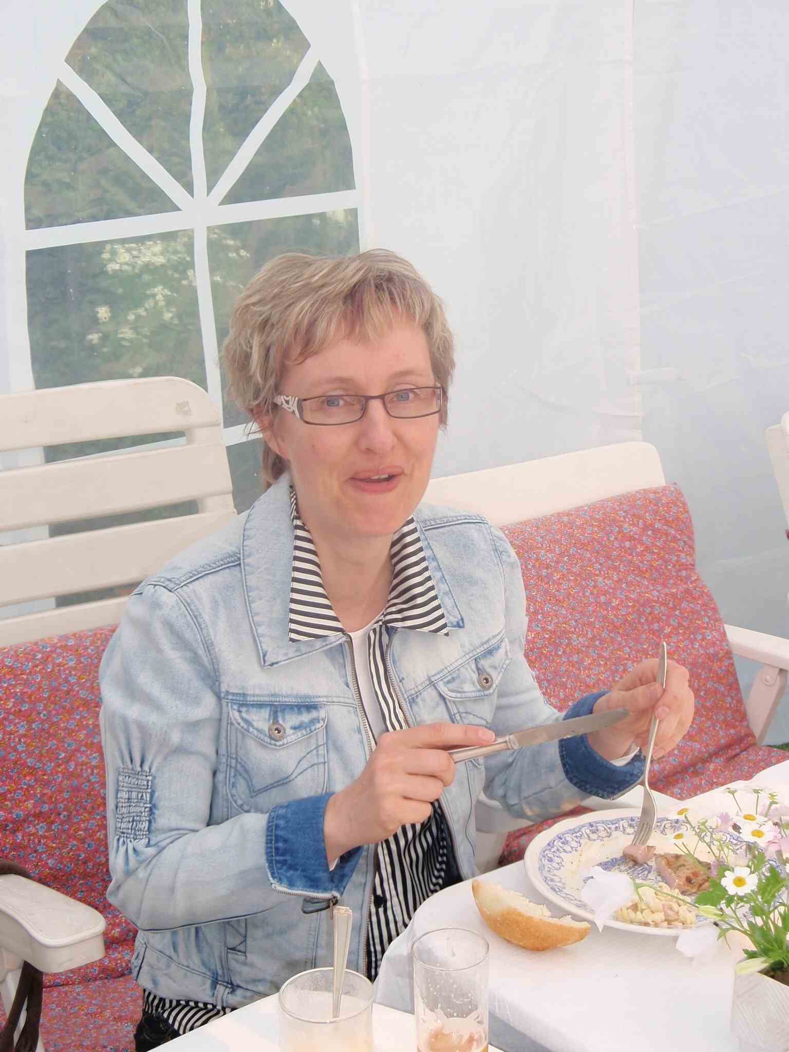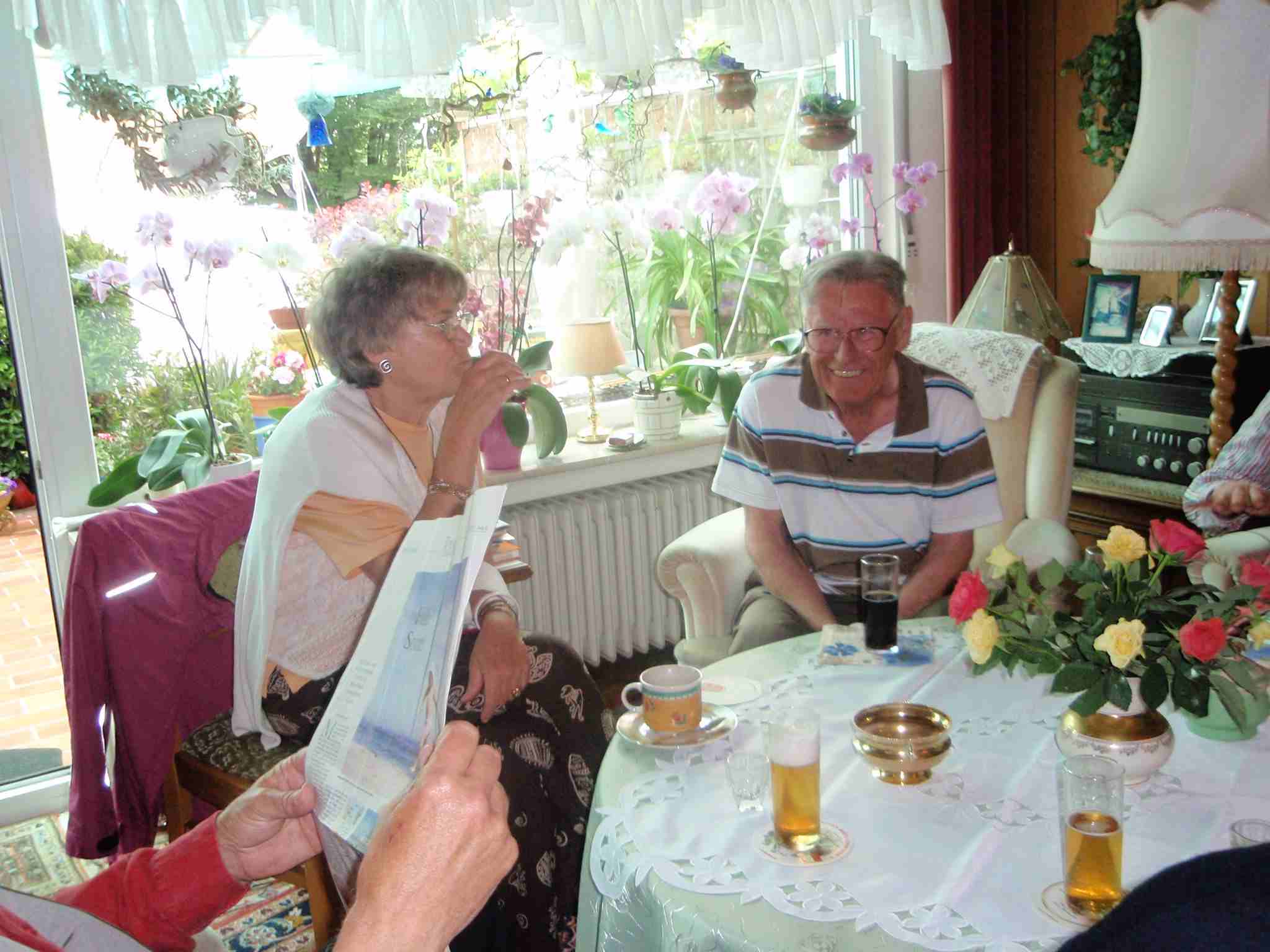 | Denn drinnen steht inzwischen der Kuchen auf dem Tisch - der Kaffee dampft - die ersten Gäste erscheinen. |