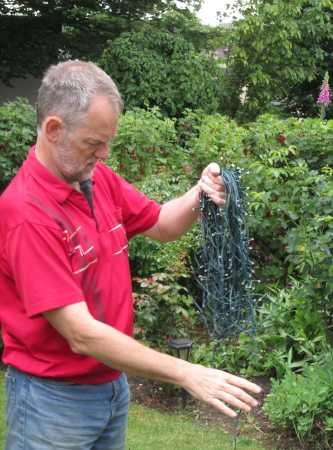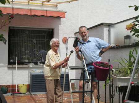 Unsere zwei bauen auf und installieren die Gartenbeleuchtung