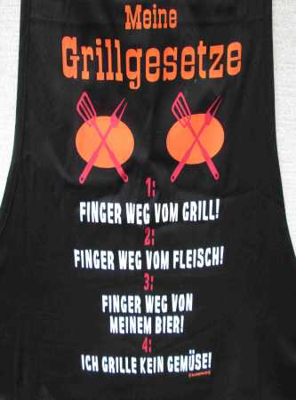 | Wir danken hier besonders unserem bewährten Grillspezialisten, der diesmal seine Grillgesetze auf der Schürze kundtat. Er hat uns einmal mehr tatkräftig unterstützt. | ![]() |