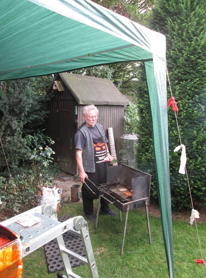 Unser Grillmeister Lothar beförderte ein Steak nach dem anderen und Bratwurst für Bratwurst