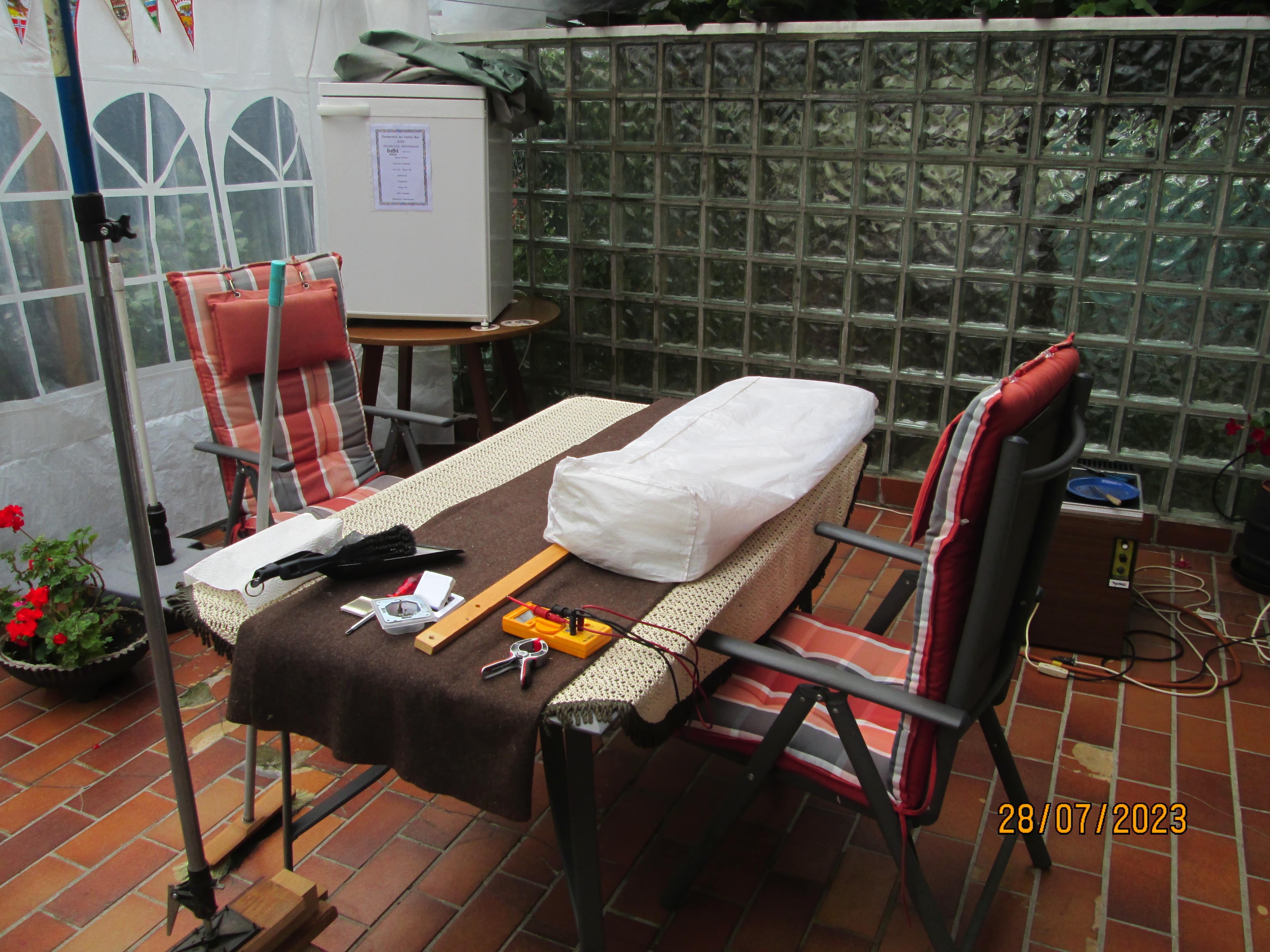 Anschliessend auf der Terrasse und im Zelt sortiert.